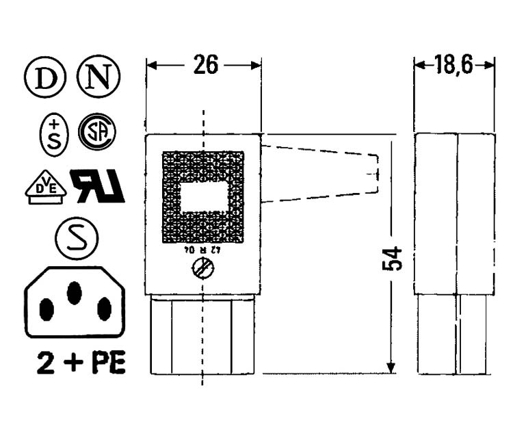 Vrouwelijke toestelstekker IEC Met aarding 10A/250V haaks C13
