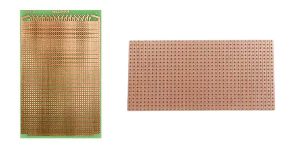 Deze printen bevatten volledig doorlopende koperen banen over de gehele lengte van de print. Dit maakt ze handig voor toepassingen waarbij meerdere componenten op dezelfde lijn verbonden moeten worden.