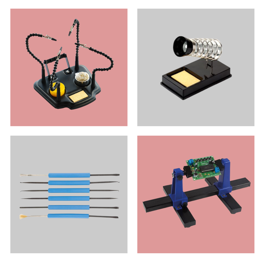 - Het helpend handje houdt componenten of draden perfect in positie.