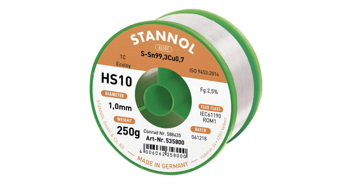 Een klassiek voorbeeld hiervan is STANNOL HS10, een hoogwaardig soldeer met lood en een actieve fluxkern.